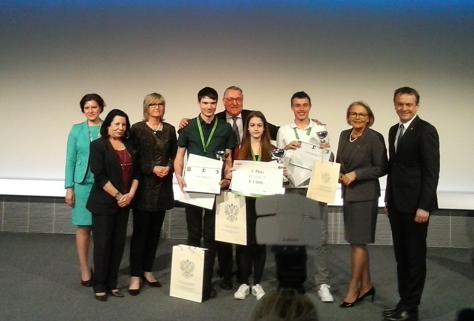 Alle Teilnehmer erhielten als Preise Bücher aus dem Weberverlag und anderen Verlagen, einen Gutschein für ein Monat Sprachstudium an einer russischen Universität ihrer Wahl und je 100 EUR, beides zur Verfügung gestellt von der Botschaft der Russischen Föderation bzw. dem Russischen Kulturinstitut. Die Preise wurden vom Botschafter der Russischen Föderation Dmitrij Jevgenevitsch Ljubinskij und der Leiterin des Russischen Kulturinstituts Tatjana Sergejevna Mischukovskaja. Die Wirtschaftskammer Österreichs finanzierte die Preise der ersten drei Kandidaten mit 1000, 600 und 400 EUR in Form von Gutscheinen, die von der Generalsekretärin der Wirtschaftskammer Mag. Anna Maria Hochhauser übergeben wurden.