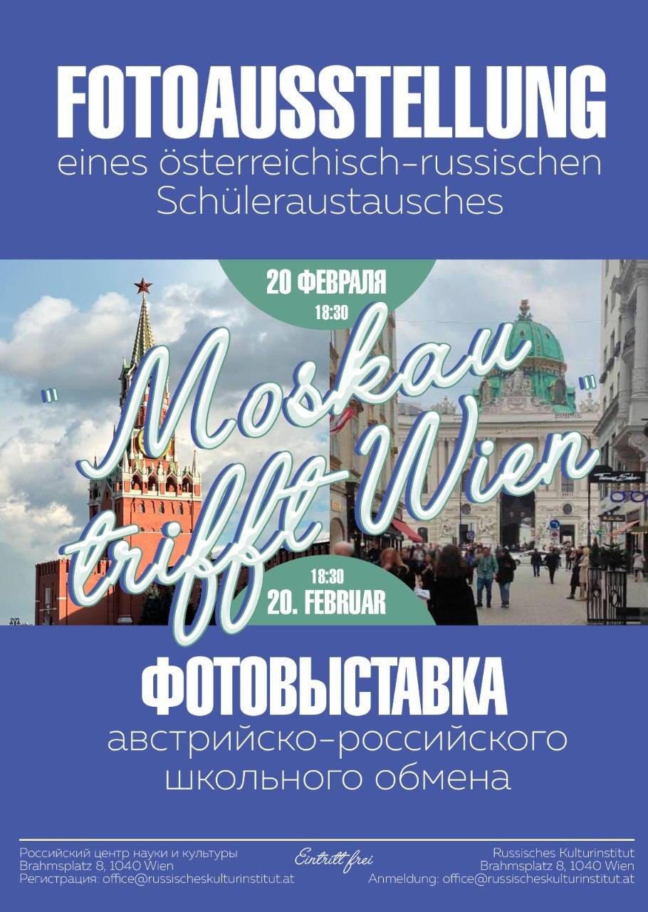 Многолетний обмен школьников продолжался в феврале 2025 года в Вене. 7 школьников и 2 учительницы из Москвы получили хорошие впечатления от австрийской истории, культуры и австрийского гостеприимство. Они жили в австрийских семьях, посещали уроки немецкого языка, ходили на оперетту, в музеи и на концерты. На фотовыставке в Российском центре науки и культуры они рассказали о своих впечатлениях. В гимназии Лаа в Нижней Австрии и в традиционном кафе в Вене московские, австрийские, немецкие и украинские ученики общались друг с другом. Это поездка стала возможной благодаря поддерже австрийских семeй и спонсоров, в том числе представительства ЛУКОЙЛа в Вене.