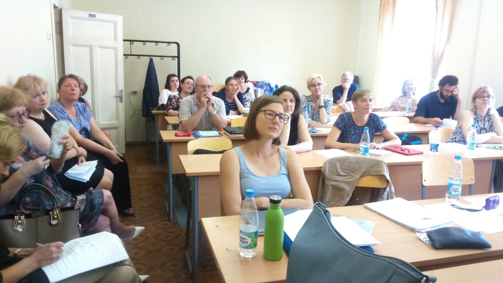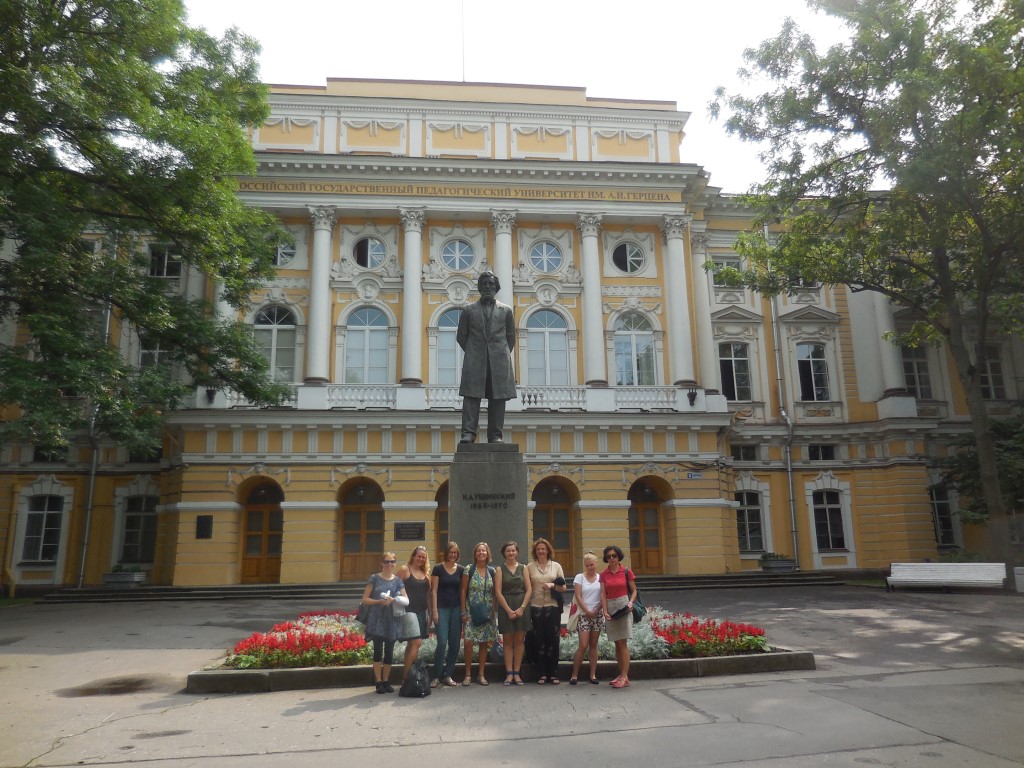 In meiner Gruppe waren 5 Lehrerinnen – 4 aus Österreich und eine Kollegin aus Polen. Die Atmosphäre war stets sehr freundschaftlich und auch außerhalb der Lehrveranstaltungen verbrachten wir viel Zeit miteinander (bei Ausflügen, Besuchen von Museen, Konzerten etc.). Der Unterricht fand im bereits erwähnten Korpus 9 statt und umfasste 20 Wochenstunden (d.h. insgesamt 40 Einheiten) aus den Bereichen Phonetik, Grammatik, Konversation, Kultur- und Geistesgeschichte, Literatur, Lexik und Phraseologie, politisches System Russlands, Wortbildung. Die Qualität des Unterrichts war sehr unterschiedlich – wir hatten viele verschiedene Vortragende, manche waren sehr gut vorbereitet und konnten interessante Inhalte vermitteln (z.B. Pschenko war herausragend (!), auch Kajsarova und Belous sehr interessant), andere weniger. Leider waren die Lehrveranstaltungen der unterschiedlichen Vortragenden inhaltlich kaum aufeinander abgestimmt. In manchen Einheiten bekamen wir gute und interessante Anregungen für die eigene Unterrichtsarbeit, auch Material, Links etc.