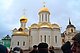 Наш пятый день начался рано утром, потому, что мы должны были успеть на электричку в Сергиев Посад. По преданию преподобный Сергий жил там много лет отшелником. Он основал монастырь, который действует до сегодняшнего дня. Монастырь называется Троице-Сергиева Лавра, и в нём служат триста монахов каждый день. В Лавре находится много церквей (таких как Троицкий собор, Успенский собор и Церковь в честь Рождества святого Иоанна Предтечи). Нам болше всего понравился Успенский собор с его прекрасными куполами.