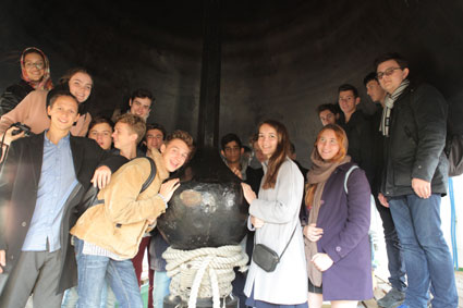 Уже с момента приезда на остановки электрички мы вошли в атмосферу Сергиева Посада. В центре города находятся 13 великолепных церквей. Мы думаем, что Троицкий собор, построенный в начале 15 века, самый красивый из них. Со своими золотыми куполами она сияет великолепием и блеском. Рядом можно было увидеть высокую колокольню, в которой висит самый тяжелый колокол России и один из самых тяжелых в мире. Мы поднялись по узким лестницам до колоколов. Нас вел студент из Духовной Академии, который нам объяснил, что ему до рукоположения в священники нужно жениться или пойти в монастырь. Мы узнали много о монастыре в Сергиевом Посаде, о его истории и об отдельных церквях.