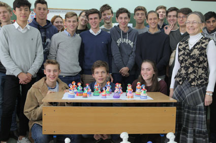 Между тем русский завтрак и три школьных часу в день с 9 до 12 часов стали обычным делом. Но никто не ожидал, что после репетиций как австрийских, так русских песен и гимнов мы будем два часа изучать смысл, производство и практичность «дымковской игрушки». Так же тихо, как на этих двух уроках, в нашем классе бывает редко, поскольку каждый может себе представить, как бабушка часами рисует керамическую фигуру, но мы редко бывает в этой ситуации.