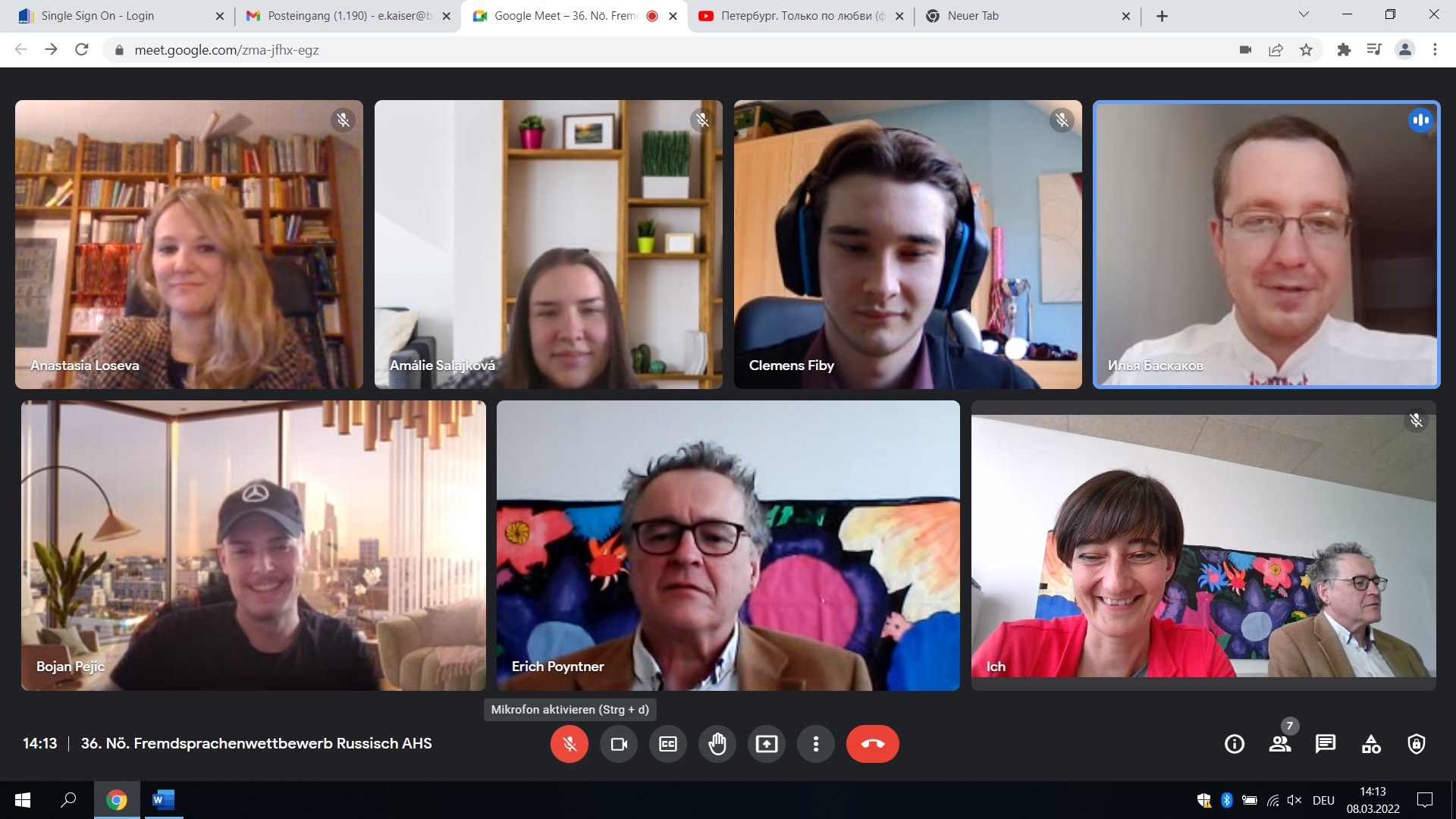 Mit großer Freude und Engagement plauderten am 8. März 2022 die besten Russischschülerinnen und -schüler Niederösterreichs mit Ilja Baskakov, dem Radiomoderator aus Krasnojarsk, und Anastasia Loseva (Russisches Haus Wien) auf B1-Niveau unter der Leitung von Dr. Erich Poyntner und Mag. Eva Maria Kaiser.