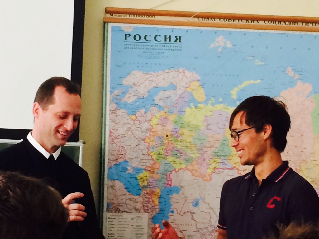 Am 2.6.2015 besuchte der österreichische Radsportler Dipl.-Ing. Michael Strasser (Fotos mit Audio) den Russischunterricht der 6. und 7. Klassen. Er fuhr 2013 mit Sportfreunden innerhalb von 13 Tage von Moskau nach Vladivostok mit dem Rad: Race across Russia. Im Interview mit den Schülern erzählte er von seinem Rekord und seinen Eindrücken.
