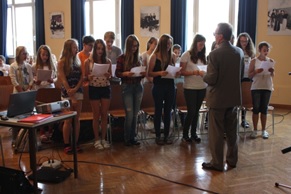 Frau Botschaftsrätin MiÅ¡ukovskaja erklärte den Russischlernenden, dass diese durch das Erlernen dieser größten slawischen Sprache nicht nur für sich selbst eine große kulturelle Bereicherung erfahren, sondern auch einen wichtigen Beitrag dafür leisten, dass die zur Zeit sehr engen und freundschaftlichen Beziehungen Österreichs und Russlands auch in der Zukunft ihre Fortsetzung finden können.