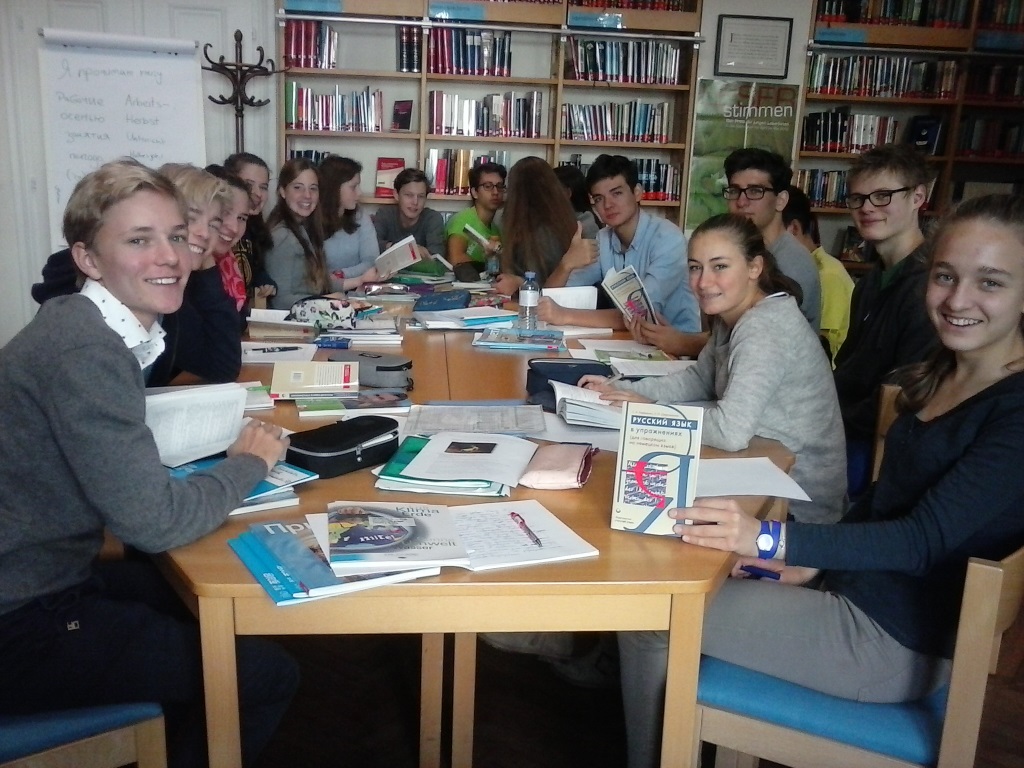 Ученики уже с начало учебного года готовились к поездке (см. фото спонтанной учебной группы в библиотеке Шоттенгимназии). Учили слова повседневной жизни и пробовали полученные знания в различных ситуациях. Но в жизни оказалось все разнообразнее, чем кабинете школы...