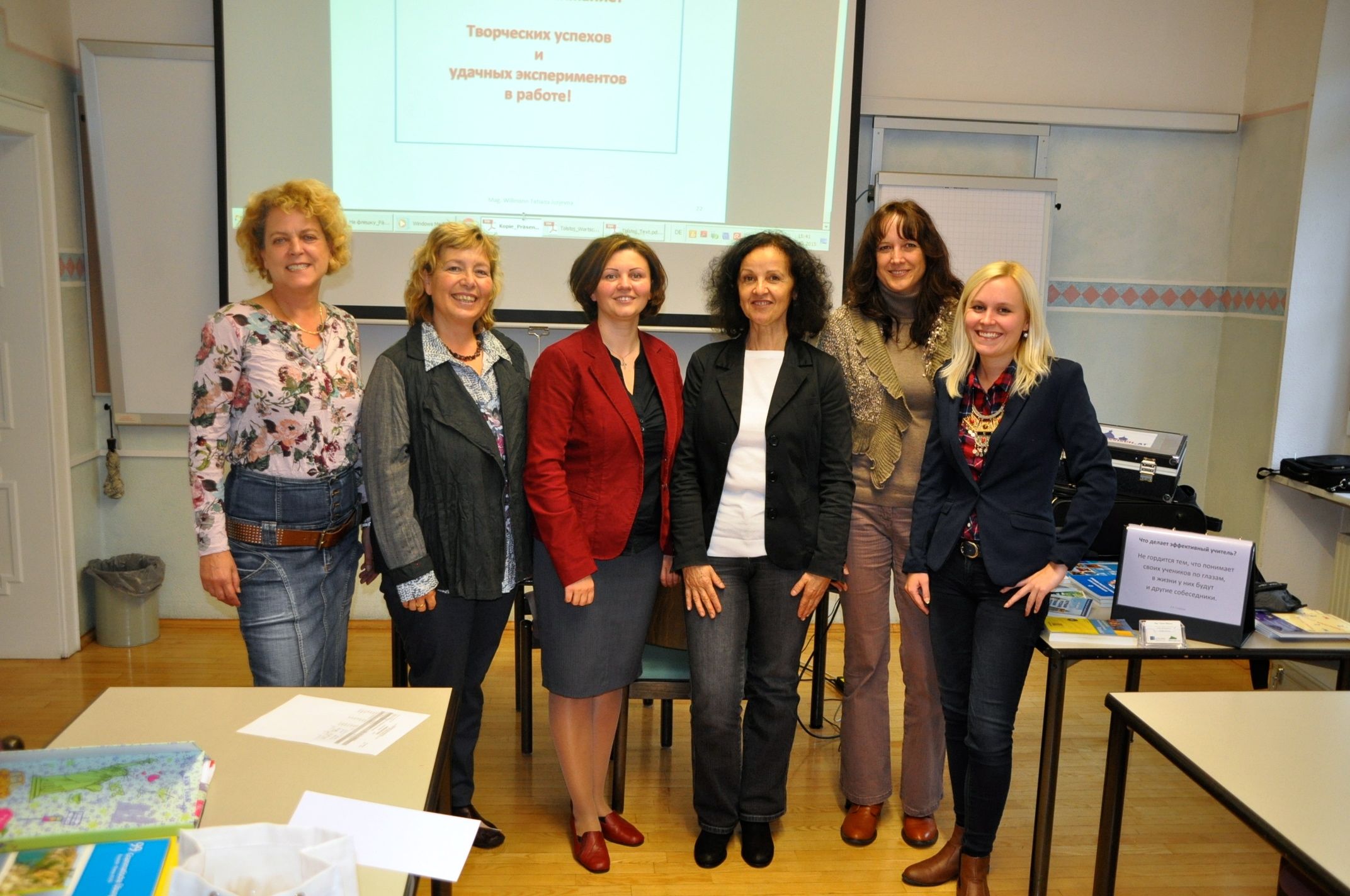 Von den derzeit 12 Schulen, an denen Russisch unterrichtet wird, waren zahlreiche Kolleginnen angemeldet, am Seminartag aber dann durch die erste Grippewelle oder andere Termine leider verhindert. Wir erhielten sehr aktuelle und anregende Seminarunterlagen, die die neuen Medien und ihre Verwendung im Russischunterricht zeigen, (besonders kann die Internetseite mein-russisch.at von Tatiana Jurjevna empfohlen werden), viele Links und Anregungen zu Lese- und Hörtexten auf allen Niveaus und sprachen über gemeinsame Probleme im Russischunterricht – sowohl an AHS und BHS in Kärnten.