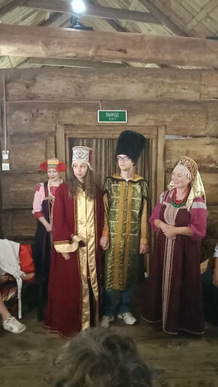 Für den darauffolgenden Tag war ein dichtes Programm angesagt. Nach der Führung durch Kolomenskoe, der Zarenresidenz des 17. Jh. auf einer Anhöhe am Ufer des Moskauflusses, nahmen die Schüler an einer Aufführung einer traditionellen russischen Hochzeit in einem Blockhaus teil. Sie verkleideten sich und wurden von Sängern und Schauspielern in die Bräuche einer Hochzeitsgesellschaft des Alten Russlands eingeführt. Bei den Kiosken des ausdehnten Parks um das Freilichtmuseum aßen sie zu Mittag. Dann fuhren sie mit der Metro zur Österreichischen Botschaft in der Nähe der Erlöserkathedrale im Zentrum der Stadt, um die diplomatische Vertretung der eigenen Heimat kennen zu lernen. Die Energie der Jugendlichen und Erwachsenen schien unerschöpflich, als sie sich danach noch zu einer ausführlichen Führung druch die Tretjakov-Galerie mit russischer Kunst von über 900 Jahren Geschichte aufmachten. Der Abend war für alle frei zu Spaziergängen durch die Stadt Moskau, während sich die Lehrer der Gruppe mit Vertretern der Universität Smolensk trafen, die ihnen die Broschüren für das gemeinsame Landeskundeprojekt rusmirnavigator.smolgu.ru zur Verteilung an österreichische Schulen übergaben. Der Nachtzug vom Leningrader Bahnhof brachte die Gruppe wieder nach St. Petersburg, wobei der Speisewagen eine gute Atmosphäre für den 18. Geburtstag eines Mädchens bot.