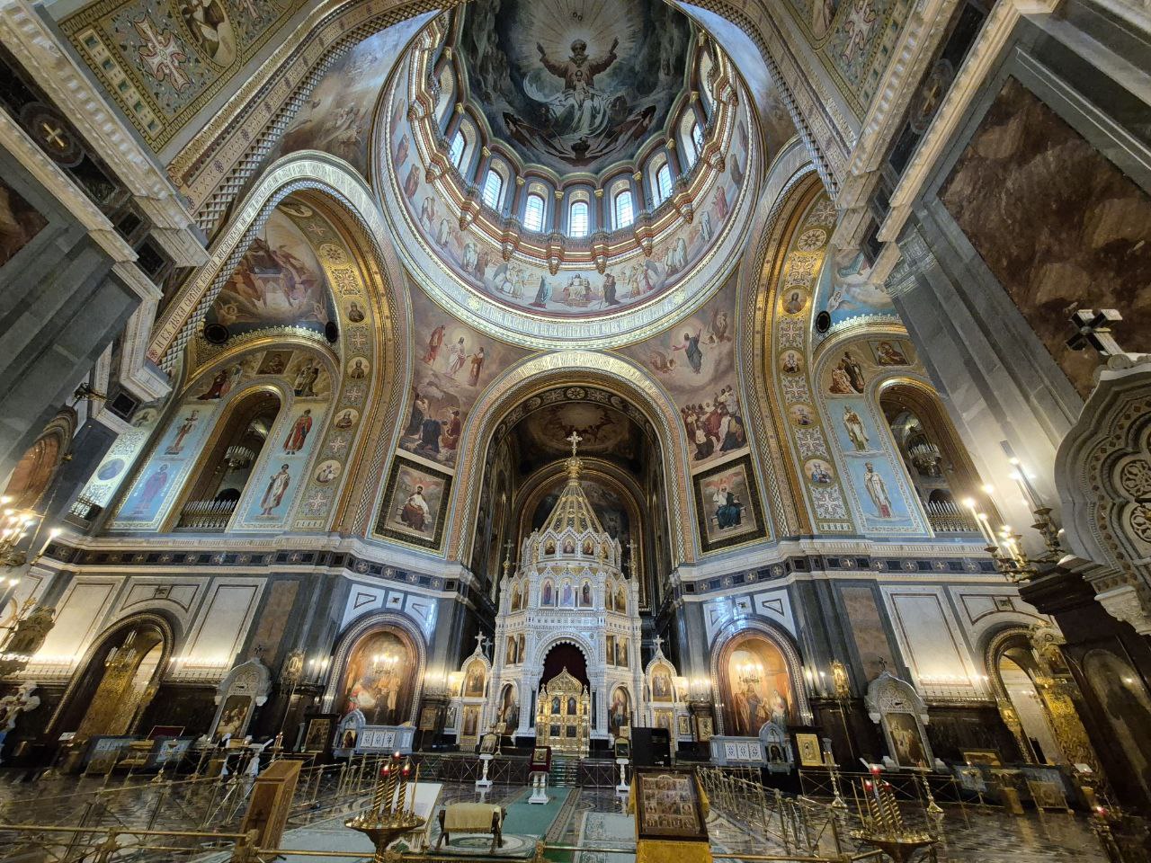 Die wichtigste Kathedrale der Russischen Orthodoxen Kirche, die im Jahr 2000 nach der stalinistischen Sprengung wiedererrichtet worden war, konnten die Reisenden zuerste besichtigen. In der Mensa der Christus-Erlöser-Kathedrale nahmen sie ihr Mittagessen ein und gingen weiter zum nahegelegenen Kreml, wo man sie schon in der Diamanten-Schatzkammer zu einer Führung erwartete. Sie spazierten daraufhin durch den Alexandergarten an der Gedächtnisstätte der “Heldenstädte” des Zweiten Weltkriegs vorbei zum Roten Platz. Im GUM, dem Staatlichen Kaufhaus aus der zweiten Hälfte des 19. Jh., aßen einige in der "Cтоловая" zu Abend, andere nützten die Zeit für einen Spaziergang, weil am Abend der Besuch des Balletts Dornröschen von Tschajkovksij im Akademischen Jugendtheater gleich neben dem Bolschoj Teatr auf dem Programm stand.