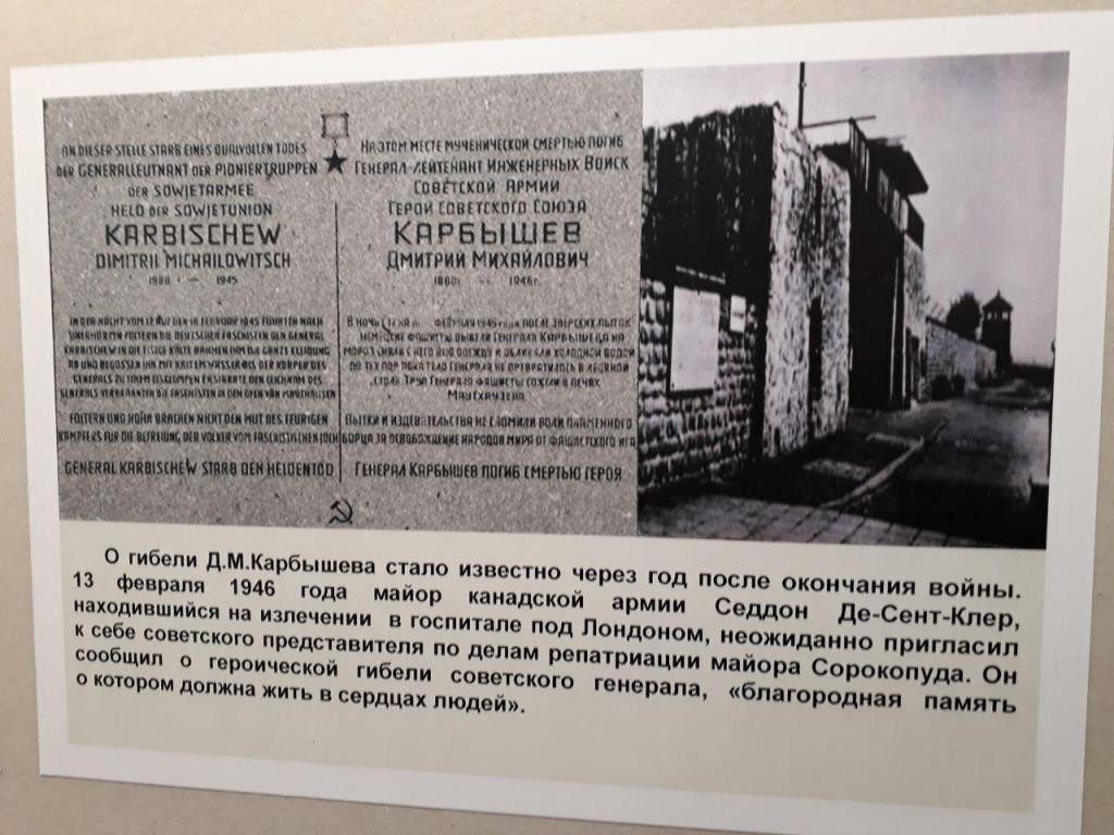 General Karbyschev, habilitiert in Kriegswissenschaften und verantwortlich für die Errichtung von militärischen Gebäuden, war am 18.2.1945 mit hunderten anderen Gefangenen in Mauthausen mit kalten Wasser übergossen und zu Tode gequält worden.